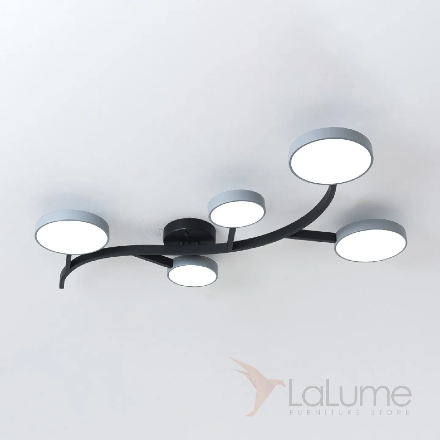Потолочная люстра на металлическом изогнутом каркасе с LED лампами круглой формы TRIPOLI