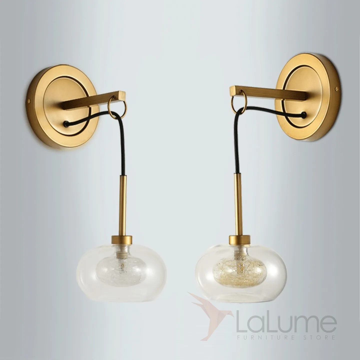 Настенные светильники с молекулярной конструкцией и комбинированными стеклянными абажурами c двух цветов.