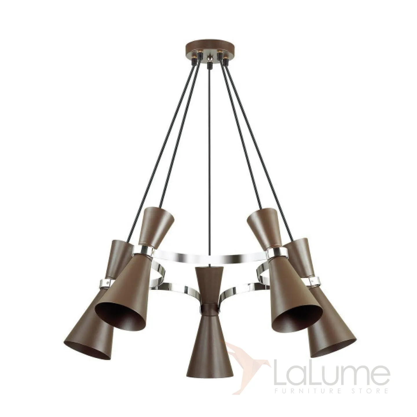 Люстра с металлическими плафонами коричневого цвета и отделкой цвета хром VANDA