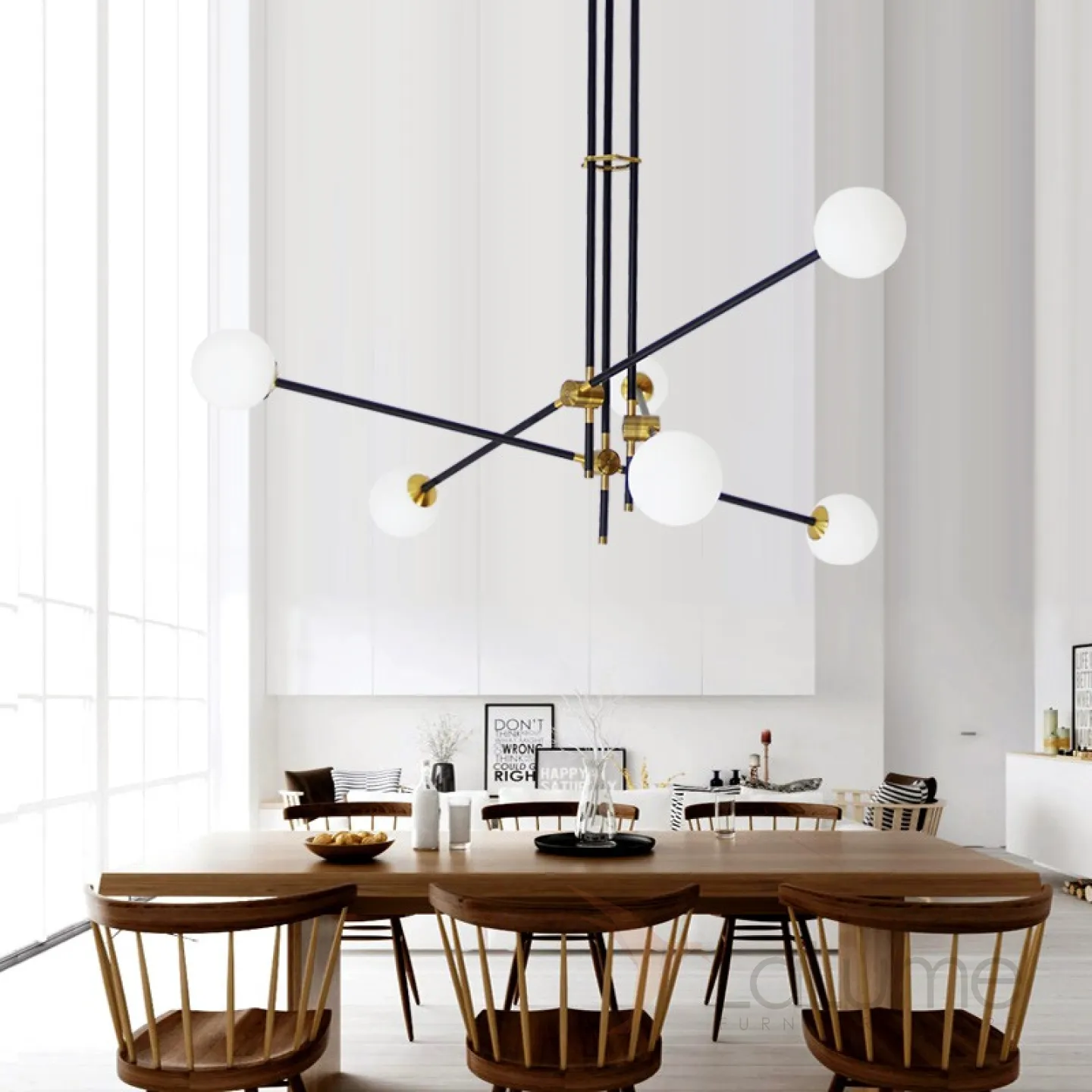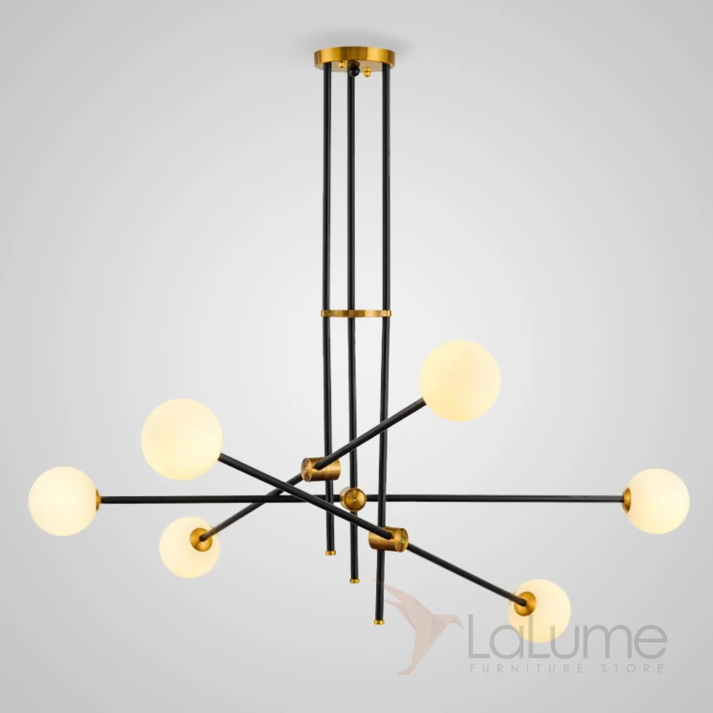 Выпускается в нескольких модификациях от 2 до 6 источников света на каркасе из металлических ассиметричных штанг с регулируемым углом наклона. Люстра Вектор — дизайн в верном направлении!