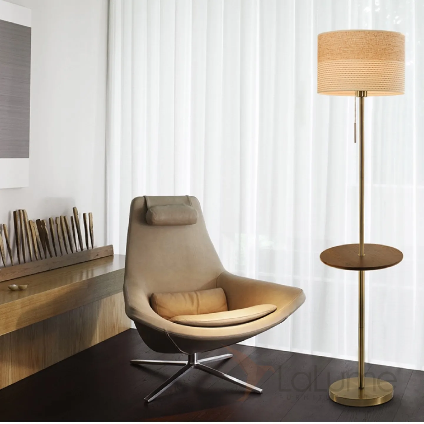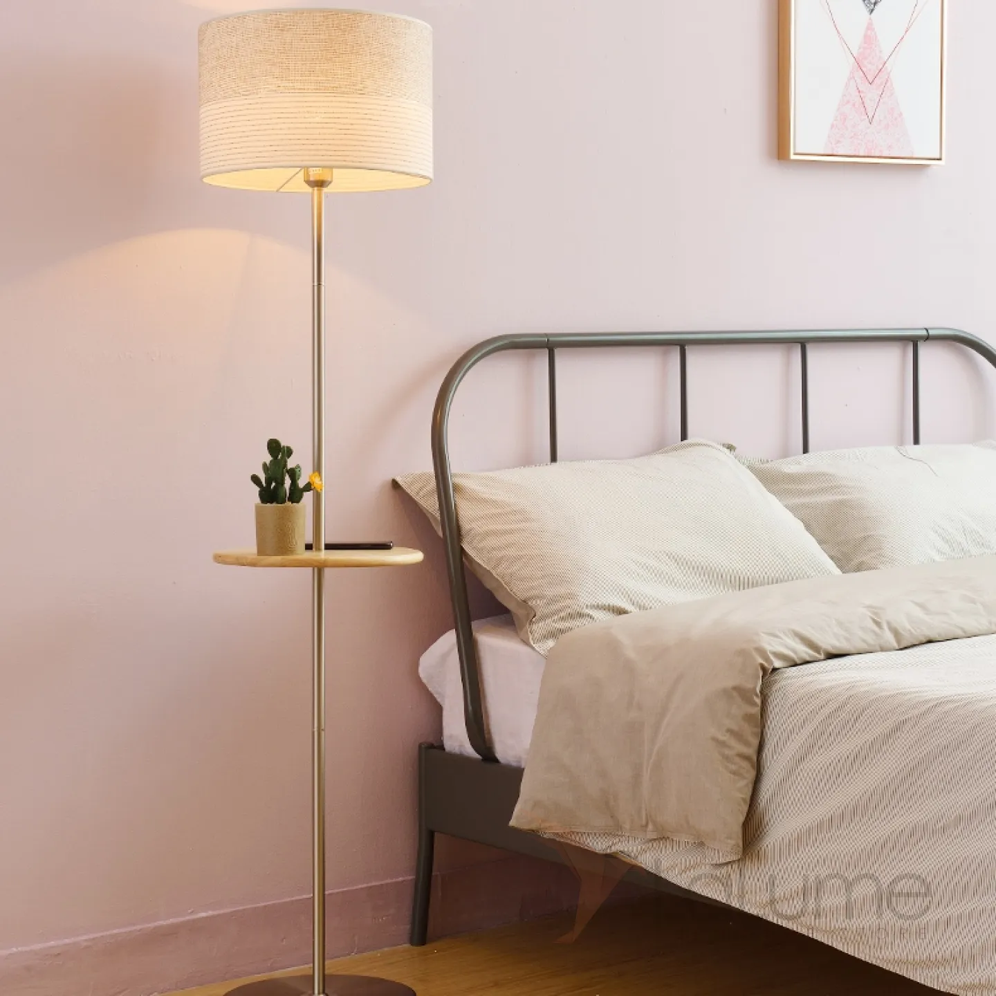 Торшер с текстильным плафоном и столикомVILBER