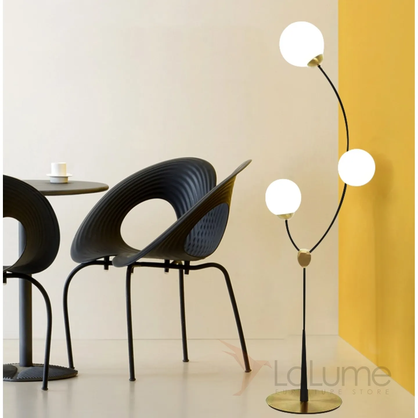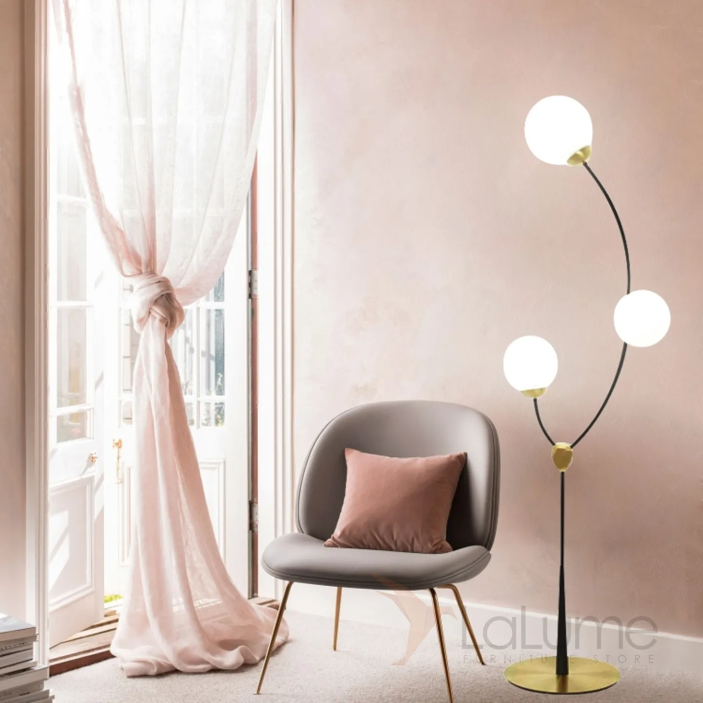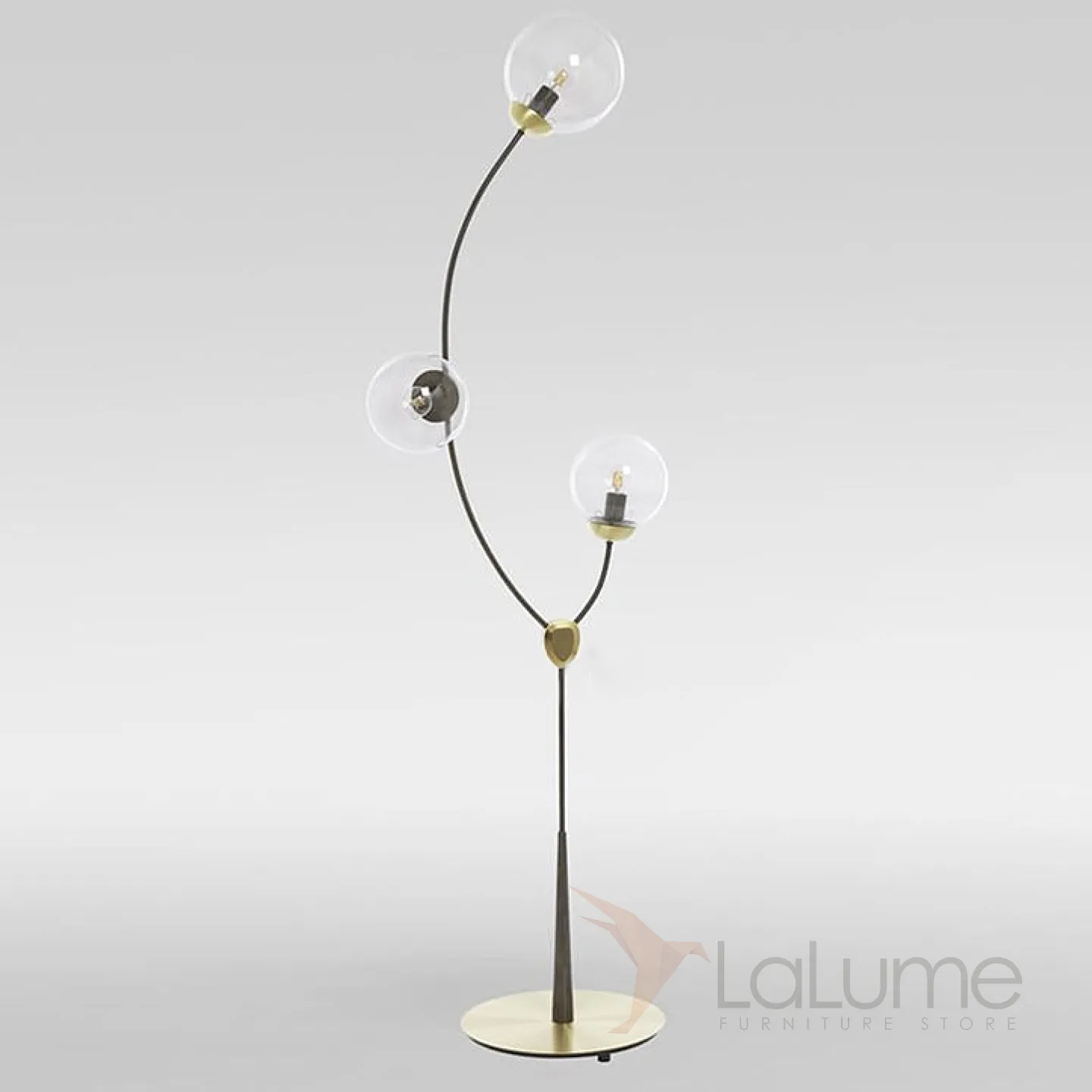 Торшер на изогнутом каркасе из метала с тремя шарообразными плафонами из стекла VINE FL