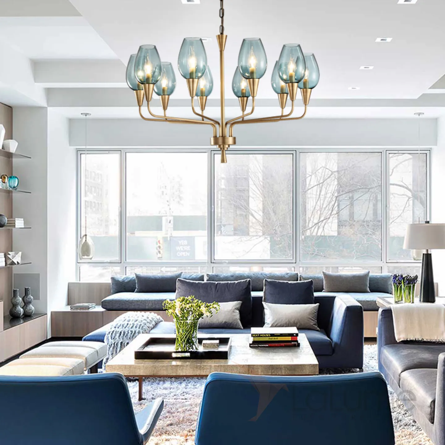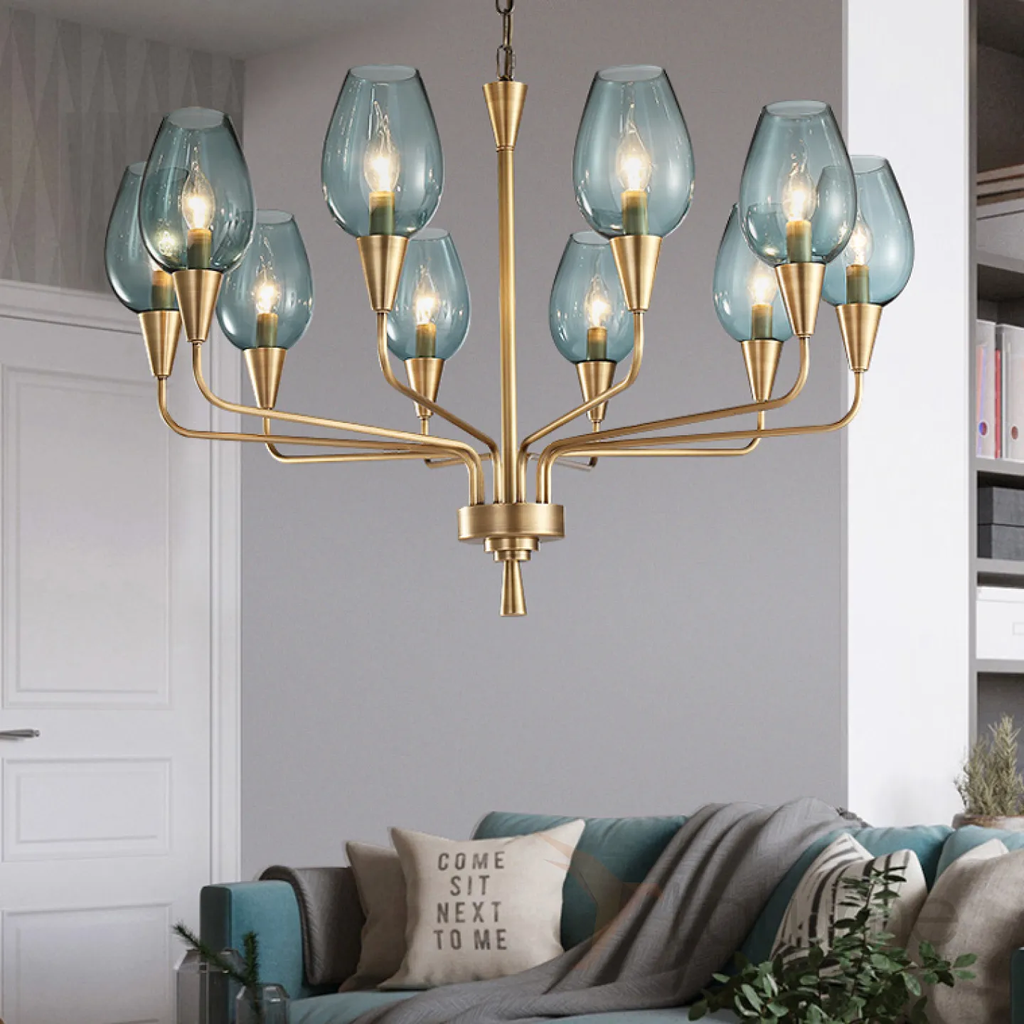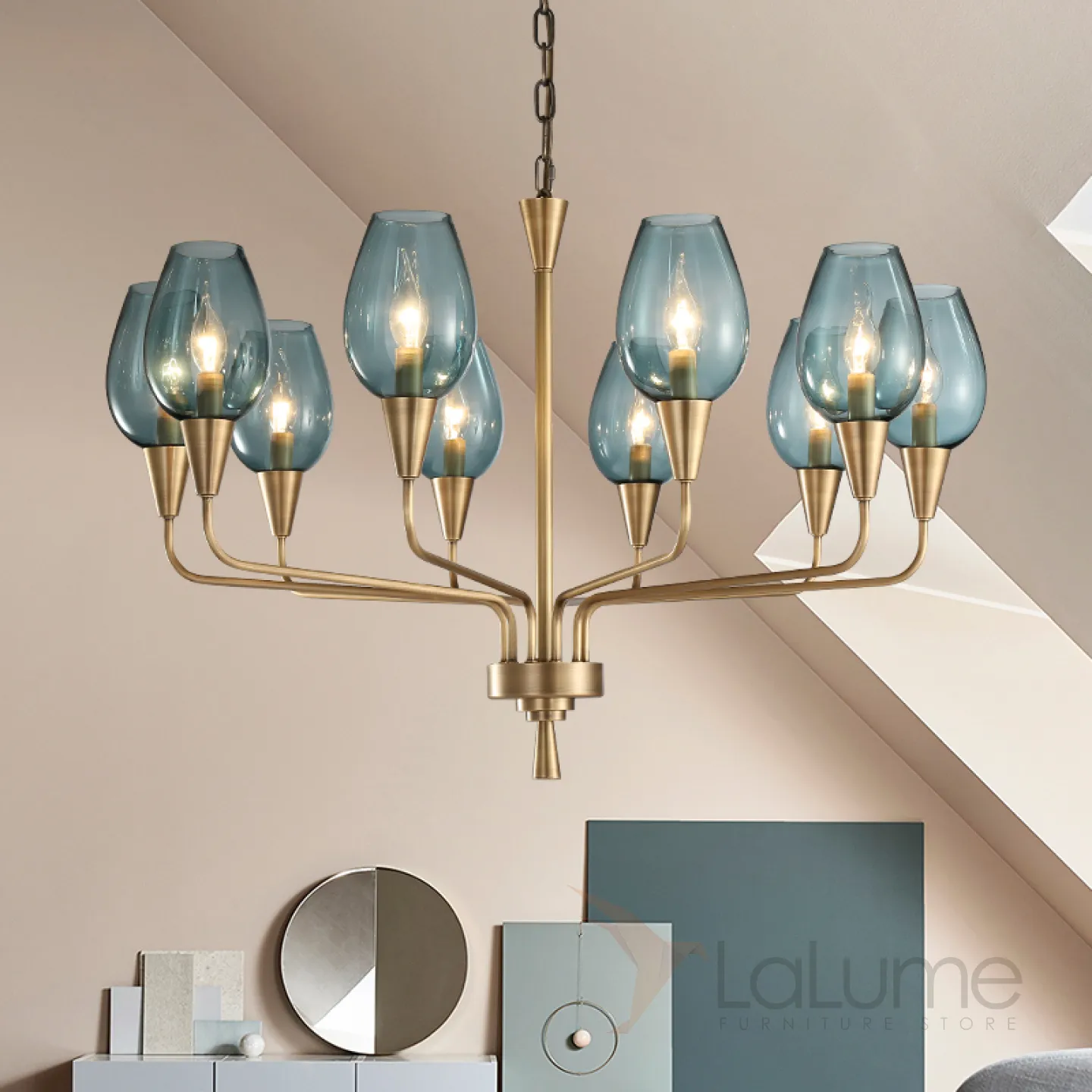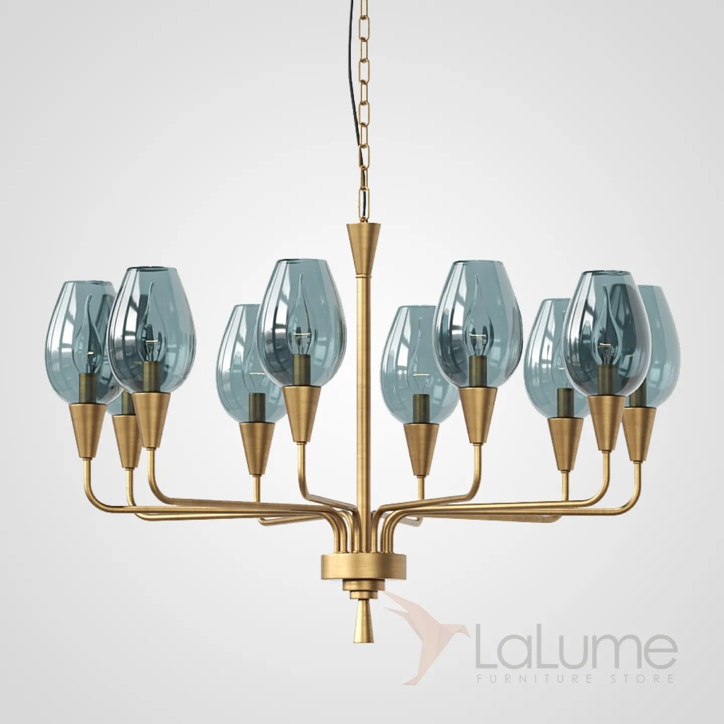 Модерн середины XX века — новая элегантная версия! Подвесная дизайнерская люстра Viola 10 Синий. Сочетайте эту модель вместе с бра VIOLA из этой же серии для создания единого стиля освещения в вашем помещении!