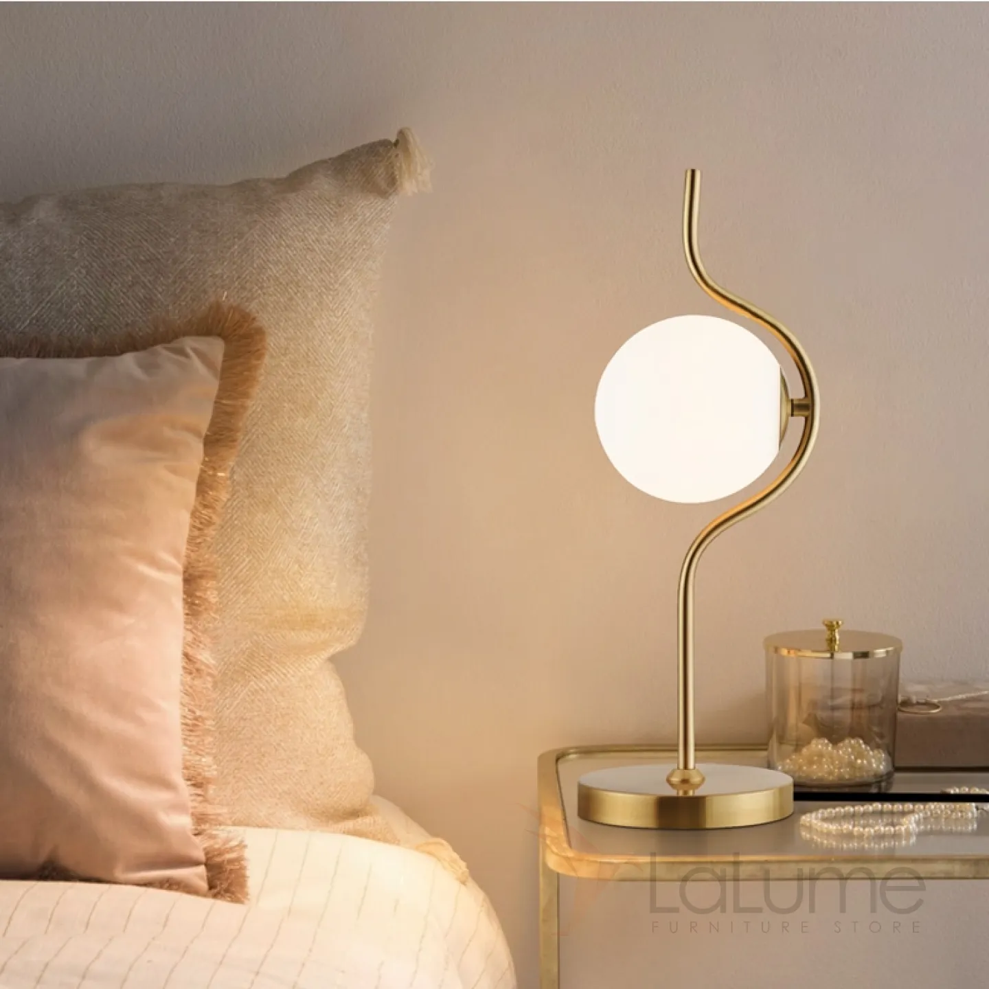 Настольная лампа со стеклянным плафоном на волнообразном каркасе WELLIG TAB