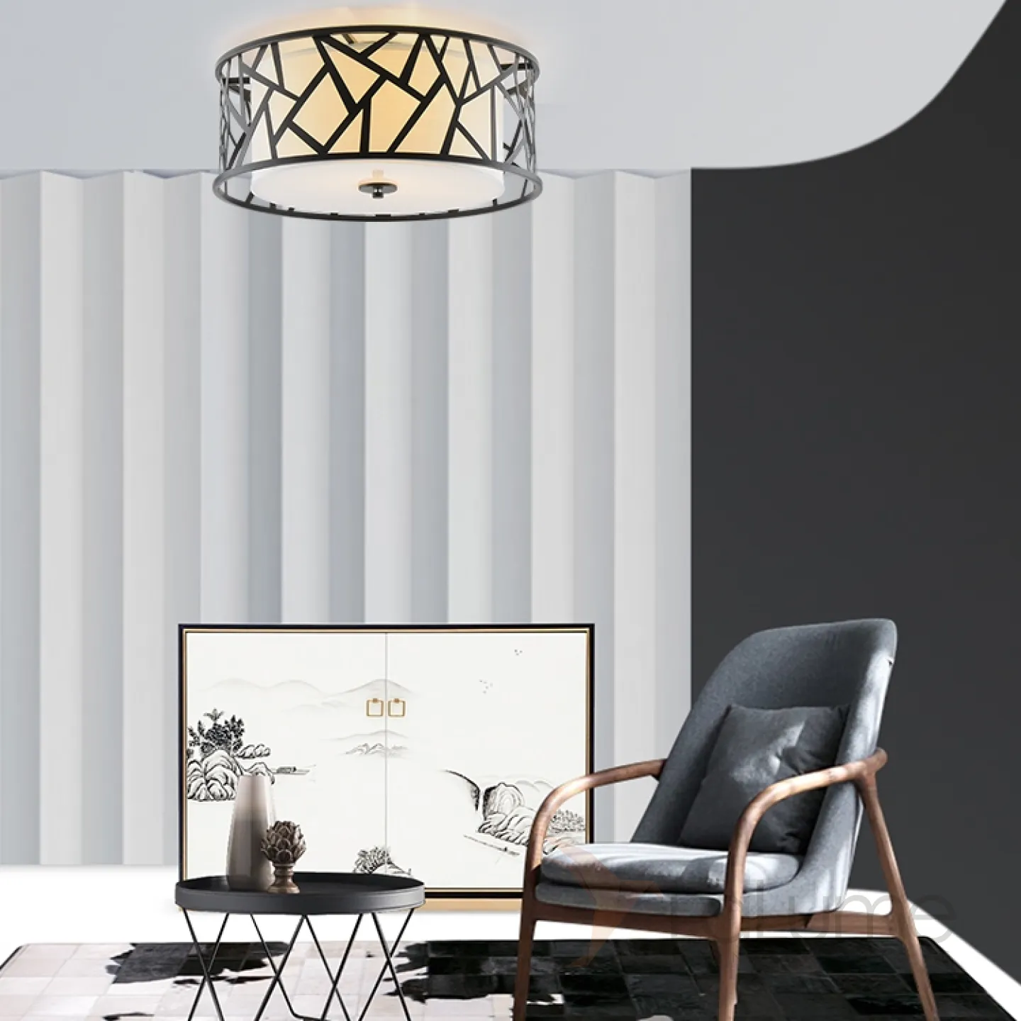 Потолочная люстра выполненная из металла с текстильным абажуром WISH