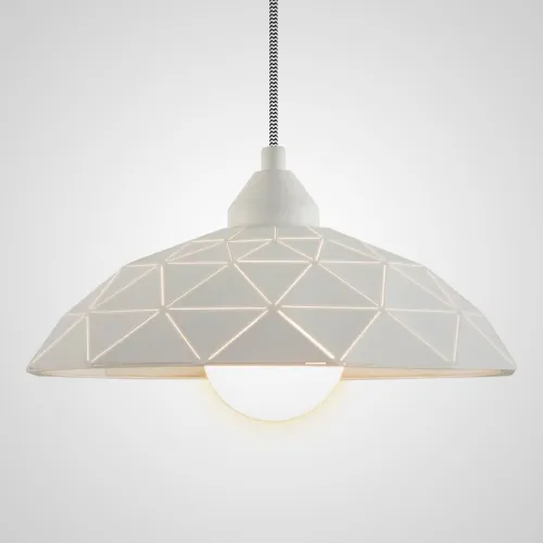 Светильник с оригинальным геометричным узором на металлическом абажуре.