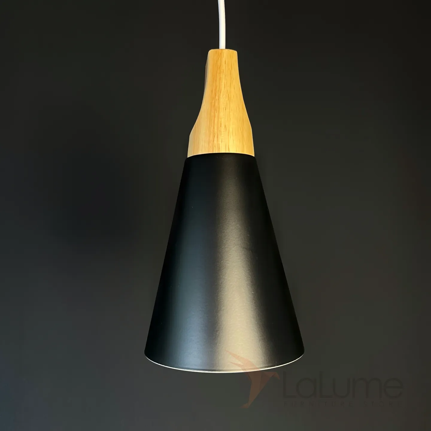 Серия подвесных светильников в скандинавском стиле с металлическими конусными абажурами и деревянным клипом. Прекрасно комбинируются в группы, как разноуровневого, так и линейного размещения на общем потолочном диске или плоскости.