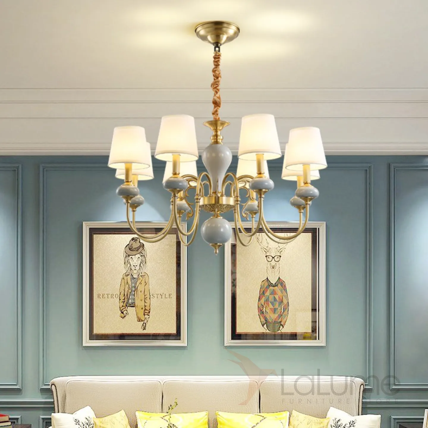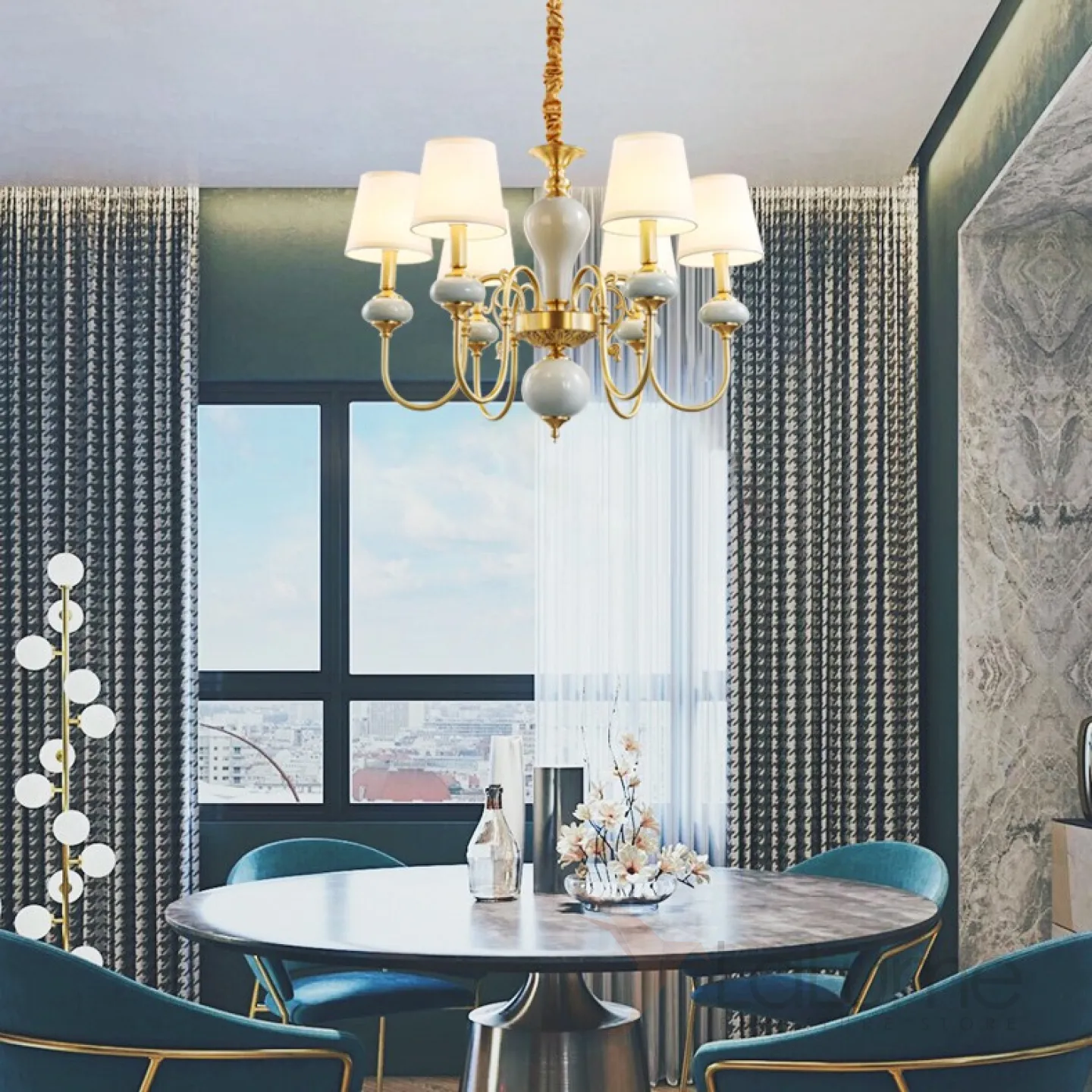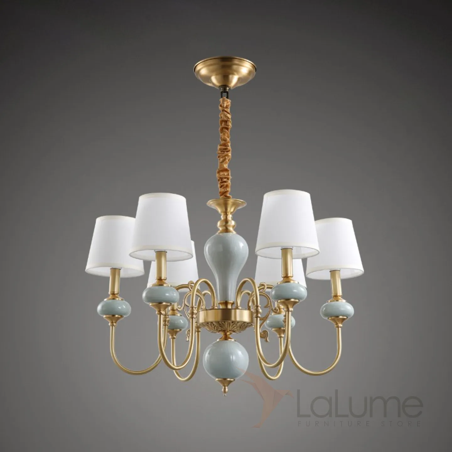 Люстра в современном американском стиле с текстильными абажурами ZOE 6