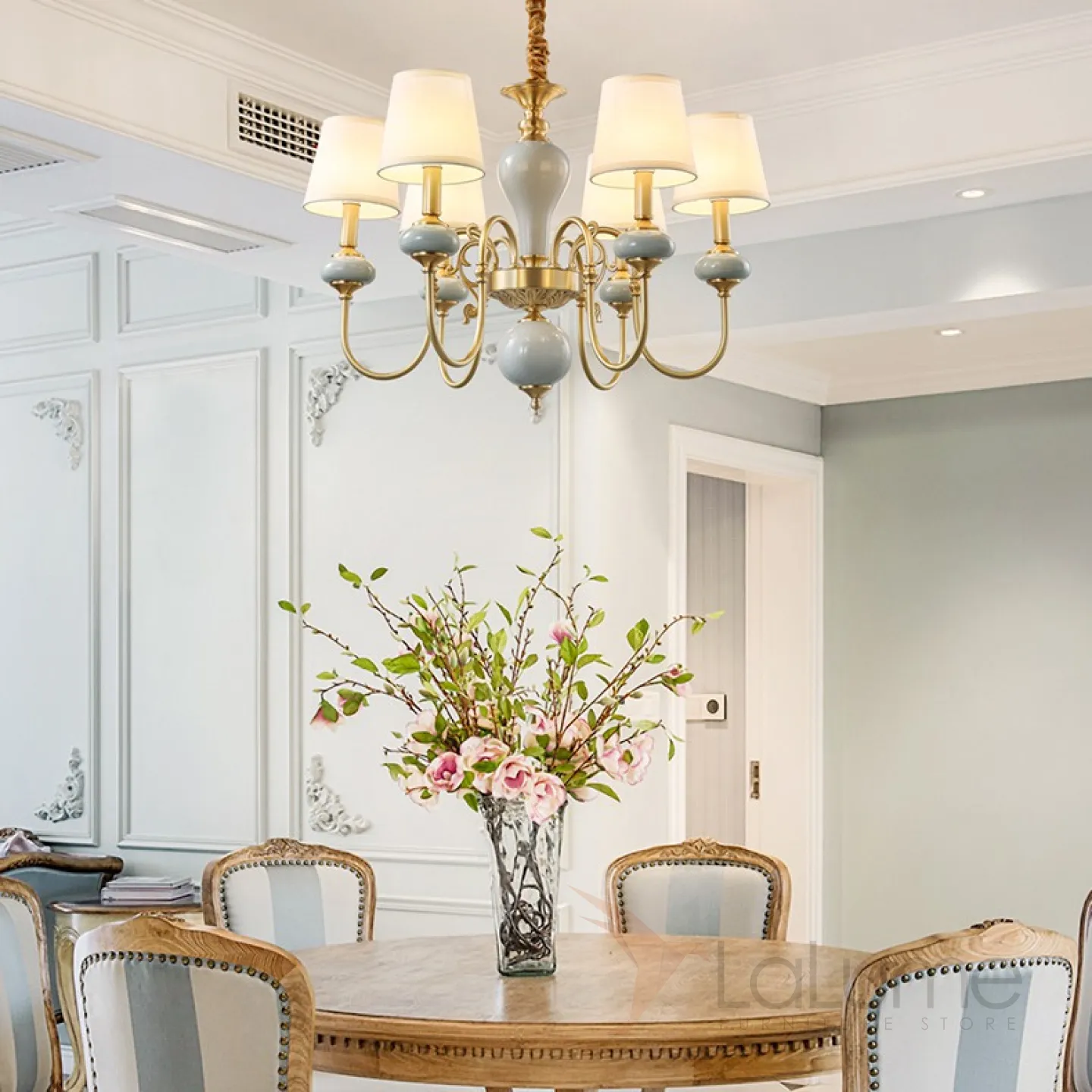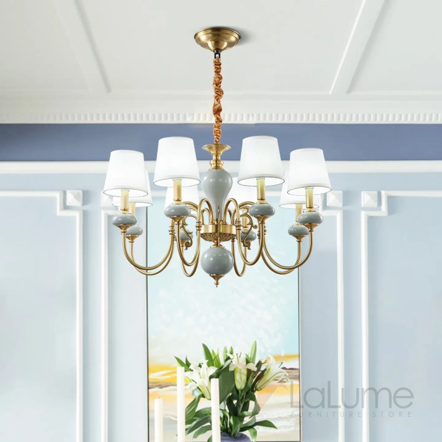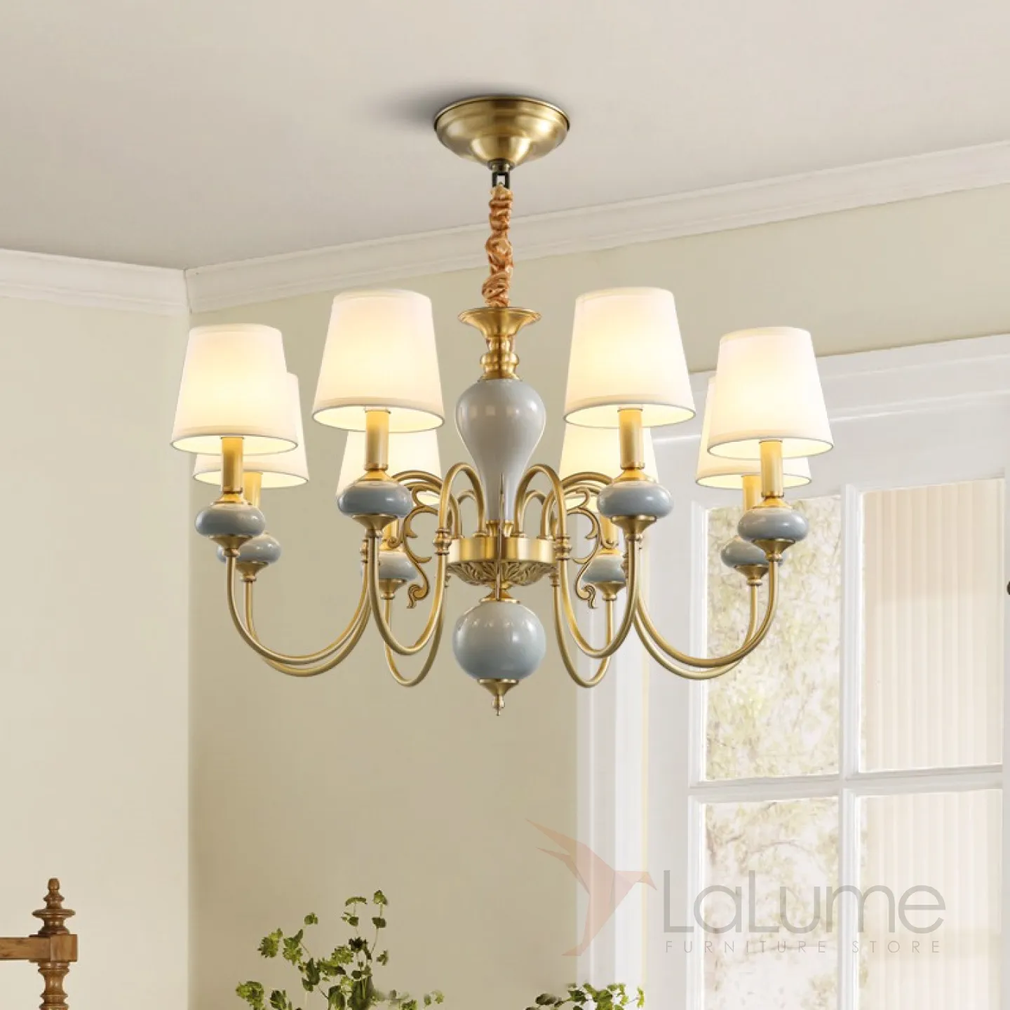 Люстра в современном американском стиле с текстильными абажурами ZOE 6
